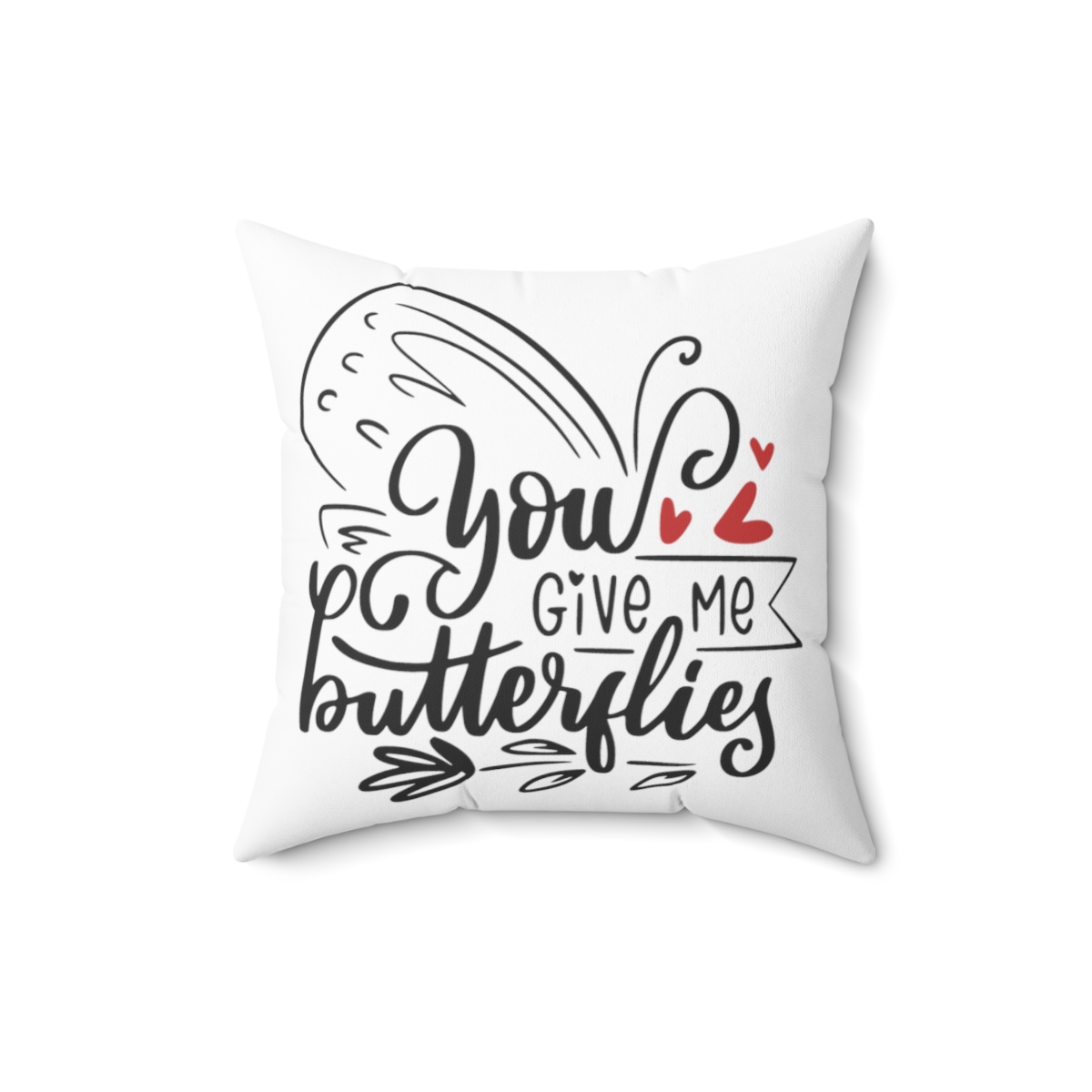 You Give Me Butterflies – Spun Polyester Square Pillow – Perfect Valentine’s Day Gift